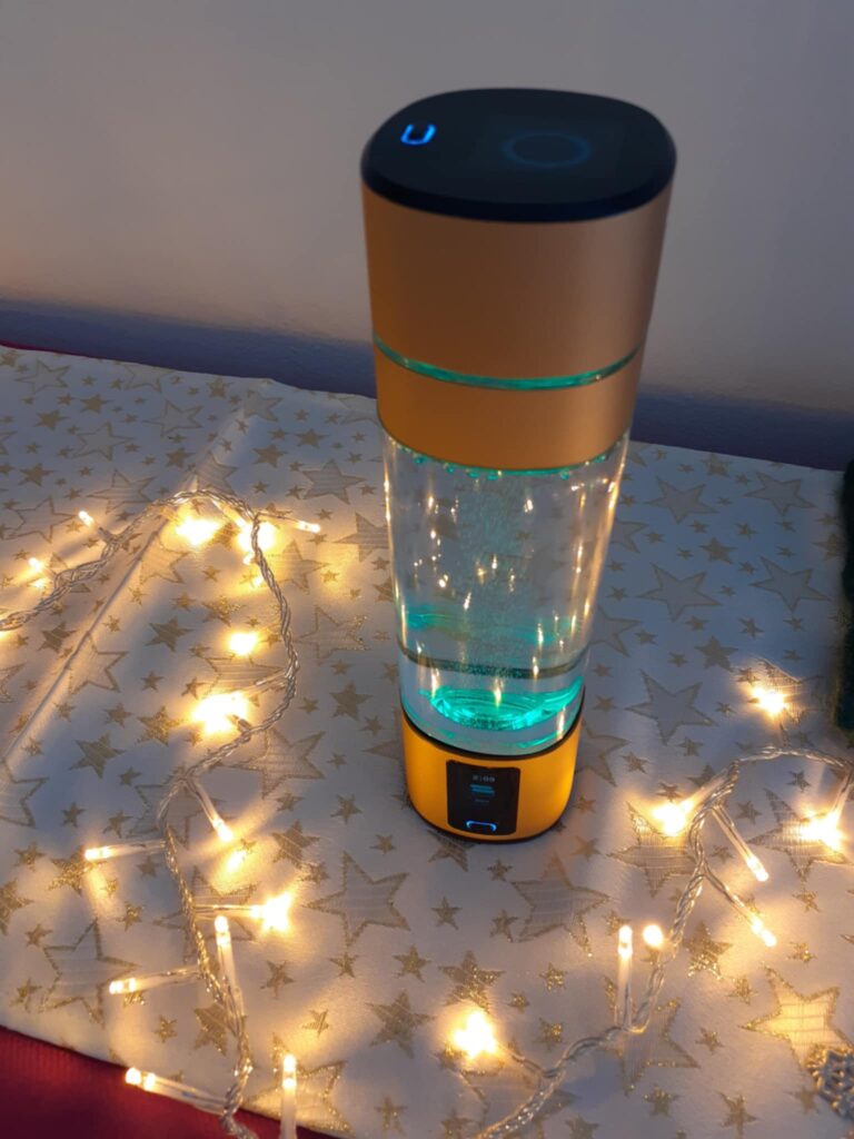 The LUMIVITAE Cellpower water bottle is designed with high-quality materials, including medical-grade, BPA-free components, ensuring that your water remains pure and safe to drink. The bottle’s innovative membrane technology and low-voltage operation further ensure that only pure hydrogen gas is infused into your water, preventing any unwanted byproducts .